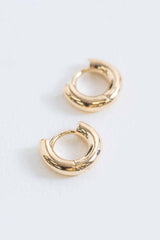These simple gold hoop earrings are a thicker version of the MINI HUGGIE HOOP EARRINGS. * Brass * 18k Gold Plating Measurement: * 0.40in / 10mm