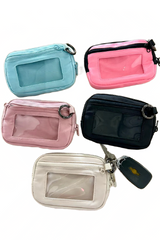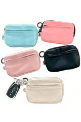 For the everyday girl on the go = all of us! This brand spanking new arrival has us drooling! Convenience just got a whole lot more convenient! Hook it on to your keys, your bum bag, lanyard, or whatever, the Girl On The Go Pouch is a necessity! Durable & wipeable nylon (same material as our bum bags) and approx. 6 x 4 x 1 in. Features 1 exterior zip pocket, 1 exterior clear pocket, 1 interior slide in mesh pocket, 3 interior card slots, and 3 interior chapstick/gloss pockets.