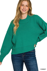 WIDE NECK BAND DROP SHOULDER SWEATER -SIDE SLITS TOTAL BODY LENGTH: 21.5", CHEST: 52" approx. - MEASURED FROM S/M