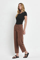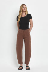 High Rise Brown Slim Barrel Jeans