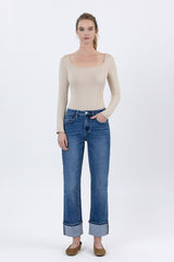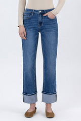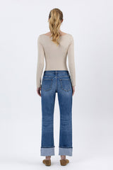 High Rise Cuffed Ankle Straight Jeans | Vervet