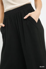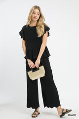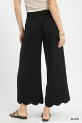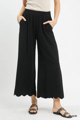 Linen Blend Scallop Hem Wide Leg Pants
