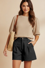 Women's Soft Matte Pull-On Shorts • Lightweight fabric with a soft, suede-like matte texture without the heaviness. • Easy pull-on design for comfort and versatility. • Pairs perfectly with our Soft Matte Cropped Vest Top WT7076. • Style as a matching set for a polished look or wear with a simple tank for effortless everyday ease. • Fabric: Woven • 90% Polyester 10% Nylon • Hand Wash Cold