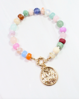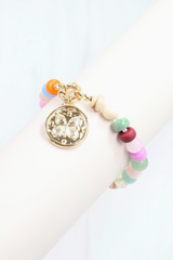 Add a pop of color to your look with the Alara stretch charm bracelet! Fun, multi-colored beads meet a golden etched butterfly charm for a playful yet elegant vibe. Easy to wear and perfect for layering, this piece is your go-to for effortless style every day. Dimensions: * Stretch- Fits most wrists