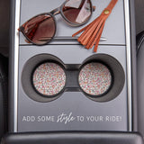 If you don’t know about car coasters yet…they’re a big deal. Like hair in the 80’s. You might ask yourself, “where have these been all my life?” Car coasters fit snuggly into your vehicle’s cup holders. Strategic divot on one side so they can be easily popped out. Pretty & practical – a pop of design and they keep your cup holders clean. 2.65” diameter. Absorbent ceramic coaster. Designed, printed and packaged in the USA