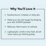 🌿Soothes burnt, irritated, or itchy skin. 🌿Extends the life of your tan by keeping your skin *super* hydrated. 🌿Moisturizing in a hurry! Forget rubbing lotion on. 🌿Reducing inflammation or redness. 🌿Always Cruelty Free! 🌿 Made in the USA