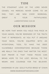 There are a lot of things that change, fail us, and disappoint us in life. There is peace to be found in the promise that He is unchanging and unfailing. He keeps every promise that He makes and He promises that His love for us will never end and that His mercies are new every morning. As sure as the tide will meet the shore, He will be trustworthy and faithful again and again. This is our hope.