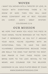 “I want you woven into a tapestry of love, in touch with everything there is to know of God. Then you will have minds confident and at rest, focused on Christ, God's great mystery.” Colossians 2:2-6