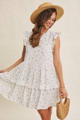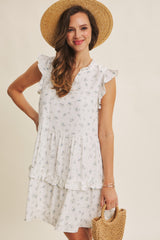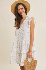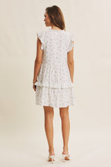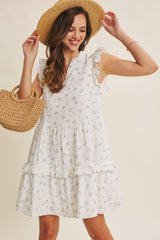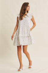 and perfect for spring picnics and everyday wear. Fully lined. Features - Split neck - Mini ruffled neck - Floral print - Breathable double gauze fabric - 100% cotton fabric - Flare mini dress - Ruffled sleeves - Tiered ruffles - Side pockets - Lined Size + Fit Model is 5'9.5" and wearing a size Small. Please refer to our size chart.