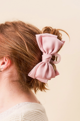 A new way to bow: our Satin Bow Claw Clip. This clip is a stylish and dramatic hair accessory designed to turn heads. Crafted for strength and style, it securely holds all hair types, allowing you to create stunning updos effortlessly. The lightweight satin bow design adds elegance, while the clip holds your hair comfortably.