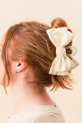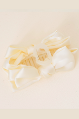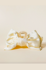 A new way to bow: our Satin Bow Claw Clip. This clip is a stylish and dramatic hair accessory designed to turn heads. Crafted for strength and style, it securely holds all hair types, allowing you to create stunning updos effortlessly. The lightweight satin bow design adds elegance, while the clip holds your hair comfortably.