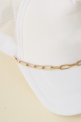 Introducing the newest accessory for hat lovers: the new Trucker Hat Chain! This versatile accessory effortlessly elevates your favorite hats. Crafted to fit seamlessly onto standard trucker hats, it features double-ended lobster clasps for easy attachment to the hat's mesh backing– simply snap on and go! Personalize your unique style effortlessly with chic gold and silver metallic chains, or dainty pearls. Fits all standard trucker hats Double-ended lobster clasps easily attach to mesh backing Mix and match to fit your style