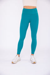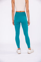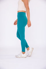 No side pockets, no back zippered pouch, just straight-up, good ol` essential full-length, eco-friendly leggings with the Mono B signature high waistband for abs support and hidden pocket. Miška in Berry is 5'9", a size 4, and is wearing an S. 80% recycled polyester, 20% spandex. Tummy control. Moisture-wicking. Four-way stretch.