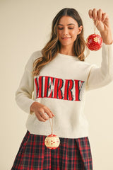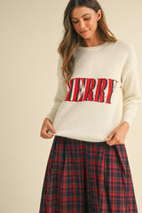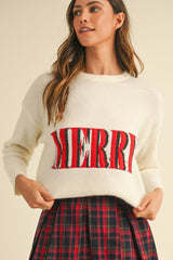 MERRY LETTERING SWEATER TOP - RIB SWEATER TOP - MERRY LETTERING - ROUND NECK - RELAXED FIT