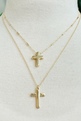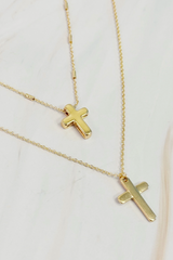 This set of two necklaces features a pretty chain and modern cross design. Versatile and stylish, these necklaces can be worn together for a complementing look or separately to make a statement. Elevate any outfit with this must-have accessory set.