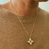 Square Pearl Cross Necklace