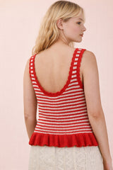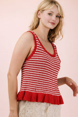 - Ruffle Hem Stripe Sleeveless Knit Sweater Top