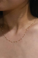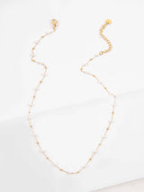 A simple chain linked with mini pearls and gold beads! * Stainless Steel * 14k Gold Plating Measurements: * Length: 16 in. / 40.64 cm * Extension: 2 in. / 5.08 cm