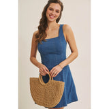 Timeless Fit and Flare Stretchy Denim Washed Mini Dress
