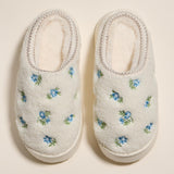 Fleece-Lined Floral Slippers with Embroidered Detail- Non-slip- Cushioned Rubber Sole