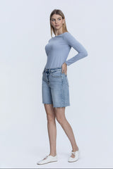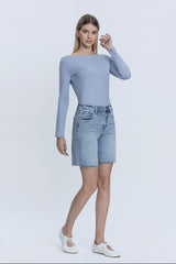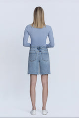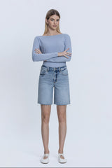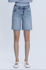 High Rise Raw Hem Denim Jorts