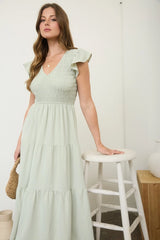 V neckline Flutter sleeve Smocked bodice Tiered Midi dressLined skirt Midi / maxi dress Shell:100%polyester Lining:100%polyester