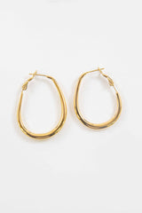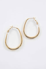Medium-sized tear-shaped gold hoop earrings. * Stainless Steel * 14k Gold Plating Measurement: * 1.5in * 3.81cm