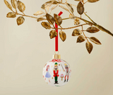Our classic porcelain ornament hangs from a red ribbon and features our favorite Nutcracker characters with gold accents for extra shine. DETAILS - Porcelain - Printed in full color with metallic gold accents - 2.5" D - 6.5" H (includes ribbon) - Red velvet ribbon for hanging - Wipe clean - Imported