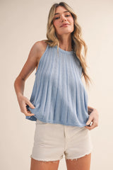 Sleeveless Pointelle Sweater Knit Tank