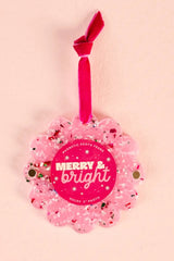 Scalloped Round Picture Frame Ornament - Confetti Pink