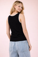 - Blanket Style Sleeveless Knit Sweater Top - Round Neck - Ribbed hem - Valentine"s Day Outfit - Easter Outfit (Model height: 5"9", wearing a Small)