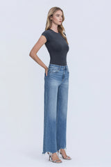 UNEVEN DISTRESSED HEM, FULL LENGTH, MEDIUM WASH, EXTREME VINTAGE