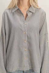 fabric with a fine stripe pattern, featuring a sharp point collar
