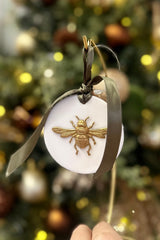 Embrace the season with these Ceramic Gold Accent Ornaments from Ten Twenty Six Designs. These round white ceramic ornament with your choice of gold accent make a delightful addition to any home or holiday decor. Whether for your own home or as a thoughtful gift, these Ceramic Gold Accent Ornaments bring a touch of charm to any space. These ceramic ornaments are about 3in dia and finished with satin ribbon. Made in Hilton Head Island, South Carolina. Add this unique piece to your collection today!