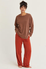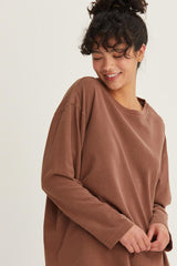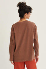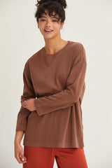 SAY HELLO TO YOUR NEW WARDROBE ESSENTIAL. THIS COMFY T SHIRT COMES WITH A ROUND NECK, DROP SHOULDERS, AND LONG SLEEVES. THE OVERSIZED BODICE OFFERS A RELAXED FIT AND A PERFECT SLOUCHY LOOK THAT PROVIDES A COMFORTABLE WEARING EXPERIENCE. 100% COTTON