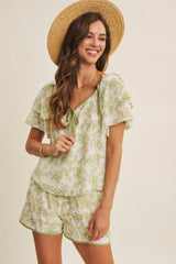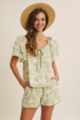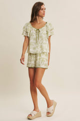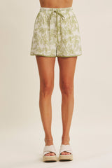Easy warm-weather styling for everyday or vacations. Features - Matching top: J2758T - Crinkled rayon fabric - Floral print - Shorts - Elastic waistband with a self-tie - Side pockets - Contrast binding - Lined Size + Fit Model is 5'9.5" and wearing a size Small. Please refer to our size chart.