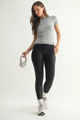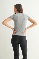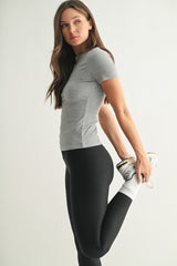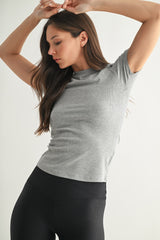 fabric with micro ribbing, this short sleeve top has a full coverage