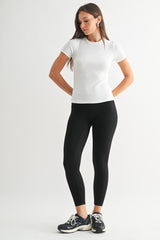 fabric with micro ribbing, this short sleeve top has a full coverage