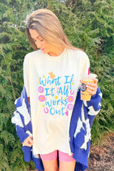 Get ready to take on the day with our "What if it All Works Out Tee"! Featuring a unique design and comfortable fit, this tee will add a touch of quirkiness to any outfit. Perfect for those who like to embrace the unexpected and keep it lighthearted.