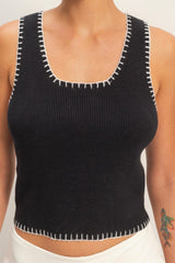 Ribbed Blanket Stitch Square Neck Tank Top