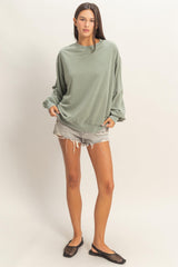shoulders with full long sleeves and ribbed cuffs. With an oversized