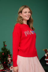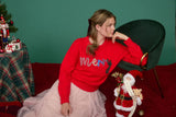 ROUND CREW NECKLINE LONG SLEEVES DROP SHOULDER "MERRY" TINSEL GRAPHIC DETAIL MULTICOLOR KNIT PULLOVER SWEATER CHRISTMAS SWEATER FABRIC: 43% Viscose 32% Nylon 25% Polyester