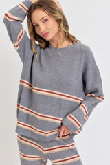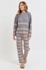SO PERFECT IN STRIPES, THIS SWEATER AND KNIT PANTS SET IS PERFECT COZY INSTANT OUTFIT. SWEATER TOP AND KNIT PANTS ARE SOLD SEPARATELY. EFFORTLESS PAIRED TOGETHER OR SIMPLY STYLED SEPARATELY. THIS PERFECT SWEATER KNIT SET HAS ENDLESS WAYS TO WEAR. CASUAL EVERYDAY FOR COMFY. PERFECT THROW-ON-AND-GO PIECE TO PAIR WITH ANY CASUAL LOOK TOGETHER OR SEPARATELY. *DETAIL* -RELAXED, LOOSE FIT -MADE WITH SOFT SWEATER KNIT FABRICATION -CASUAL LOOK -ROUND NECKLINE -LONG SLEEVES -MATCHING KNIT PANTS SOLD SEPARATELY