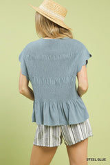 Linen Blend Smocked Peplum Top