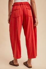 MINERAL WASH BARREL FIT UTILITY KNIT PANTS - SOLID FRENCH TERRY - MINERAL WASH - DOUBLE POCKETS - STRETCH WAISTBAND - DRAWSTRING - STITCHING DETAILED - ANKLE LENGTH - RELAXED AND SLOUCHY FIT