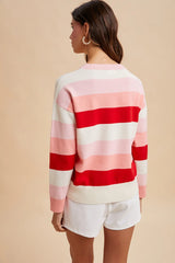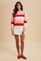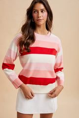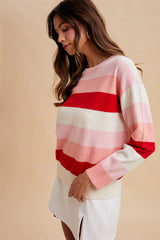 - VALENTINE'S DAY COLOR THEME- V-DAY OUTFIT- SOFT WOOL SWEATER- WIDE STRIPE- RIBBED CUFFS & HEM- RELAXED FIT- 94% POLYESTER, 6% WOOL