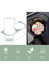 Car coasters fit snuggly into your vehicle’s cup holders. Strategic divot on one side so they can be easily popped out. Pretty & practical – a pop of design and they keep your cup holders clean.