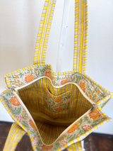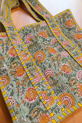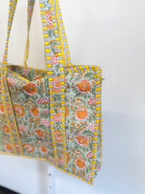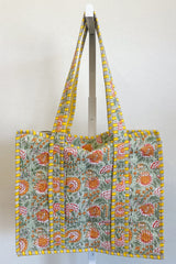 Add a pop of color to your summer style with our Meadow Quilted Tote Bag. This quilted cotton bag features a playful pink and green floral print, making it a fun and stylish accessory. Perfect for carrying all your essentials in a unique and trendy way!
