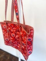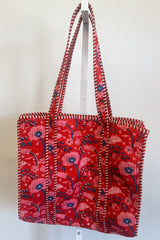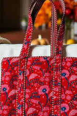 Scarlet Blooms Quilted Tote Bag